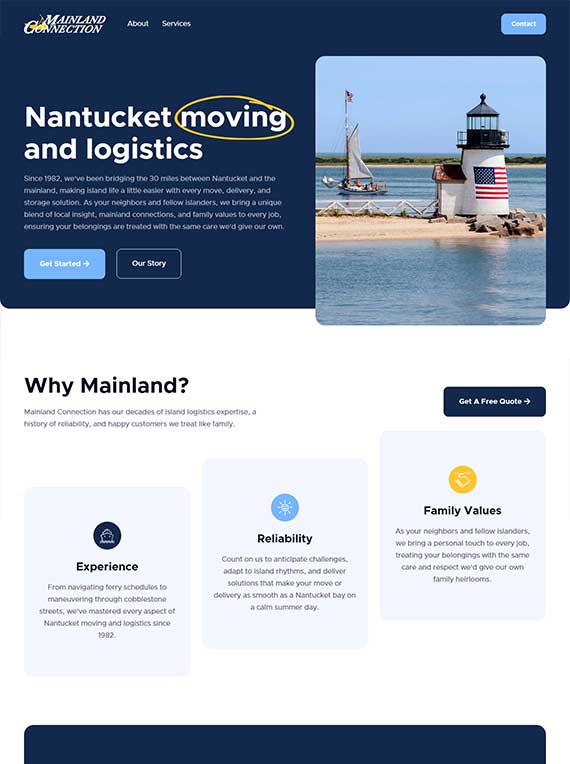 Discover how Nantucket Studio revolutionized Mainland Connection’s logistics with high-performance web design and custom quoting software. Experience the advantage of an on-island hosted partnership that drives real results for Nantucket’s premier businesses.